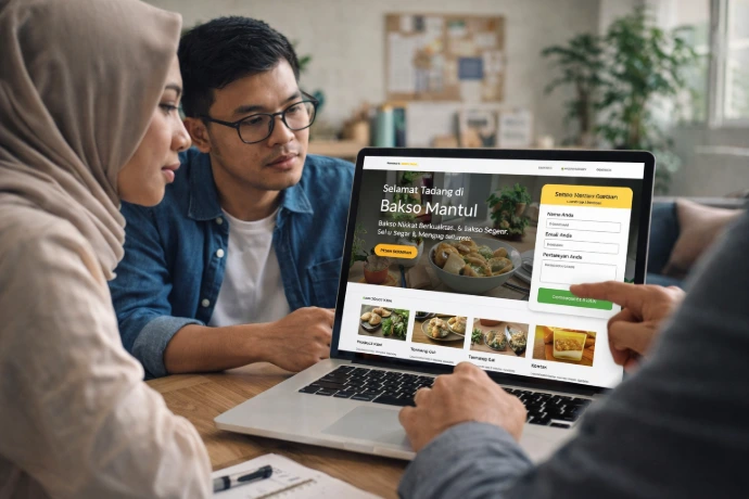 Pendampingan pembuatan website dan landing page sederhana sebagai pusat informasi usaha, produk, dan kontak UMKM.